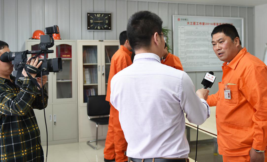 ▲《媒体聚焦》。正是靠着小本本的日积月累,杨金安建立起自己的一套炼钢“宝典”和创新创效的“大数据库”,从而由一名普通炼钢工人成长为一名高级技师、优秀共产党员,成为学习型、创新型员工的代表,也成为众多媒体关注的对象。中央电视台采访杨金安时的画面。